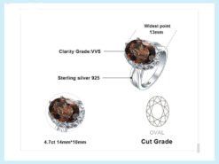Bridal jewelry set large natural smoky quartz 925 sterling silver jewelry set pendant necklace ring earrings for women gemstone set
